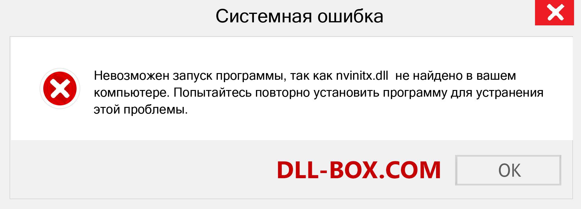 1. Программа не может запуститься, потому что на вашем компьютере отсутствует nvinitx.dll. Попробуйте переустановить программу, чтобы решить эту проблему.
